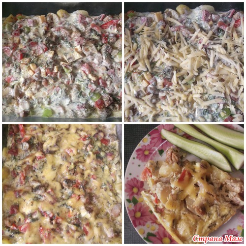 Сегодня ревизию в холодильнике делала, вытащила на стол все, что залежалось и край нужно использовать, а то на выброс. И замутила из всего что было обед. Мои едят и приговаривают как вкусно, а муж еще по - умничал, что наверное опять рецепт из СМ взяла