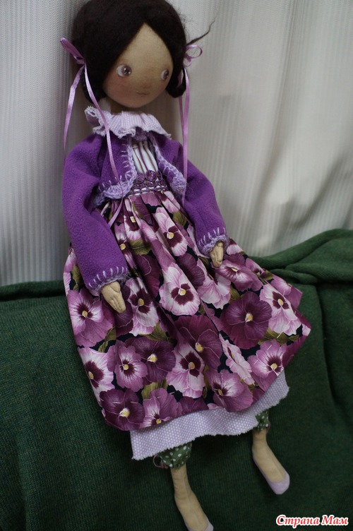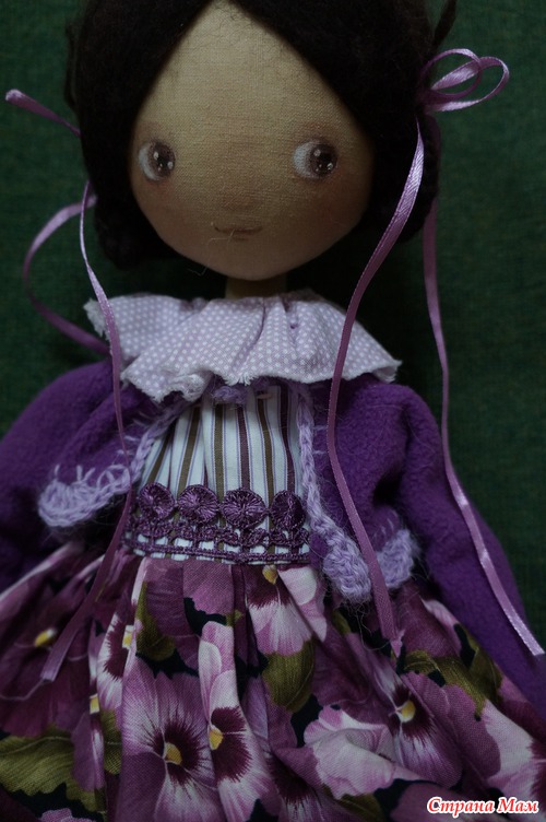 Примерно год назад я начала сама шиТь кукол, ну и лазила по всяким блогам и сайтам. Интересно же посмотреть, тем более, что у всех куклы абсолютно разные. Совсем случайно наткнулась на кукол Татьяны Качалиной, сначала на Тильдомании, потом почитала ее блог. Мне очень понравились ее большеглазые красотки. А тут и соббщение, что Татьяна готова поменяться, меховушки для теддиков на куклу. К сожалению никаких меховушек у меня не было, но так как я неоднократно повторяла, что я особа наглая, я все-таки написала. Предложила поменяться на японские тканюшки и книжки. а Татьяна все настаивала на мехах. Ворде как тканюшек у нее вагон и маленькая тележка. А я про меха для теддиков вообще, ни слухом ни духом. Из чего их чьют? Мексиканский тушкан, шанхайские барсы??? Оказалось, все банально и просто: японская альпака, японский шелк и т. д. Ткани делают в Японии. Кое-ка я нашла один интернет -магазин с меховушками. Да и удовольствие очень дорогое. Меха -то все натуральные, шелк. Предложила Татьяне выбрать. Потом заказала, и отправила ей посылку. Я вообще-то не особо верила в успех этого мероприятия. Но теперь у меня живет кукла Таня и кот Аркадий. Это мои диферамбы возымели такую силы, что Таня решила мен его подарить. А тут дочка стала кота клянчить, хоть мне и было жалко его отдавать ан растерзание детям, все-таки отдала, да и Таня настаивала, когда узнала, о страстной любви Мусильды к Аркадию. Хотя дочка -то его не обижает, а вот мелкий, сказал, что это "зяйчик" и хвост оторвала. У зайчиков ведь хвостов не бывает. Но я хвостик пришила