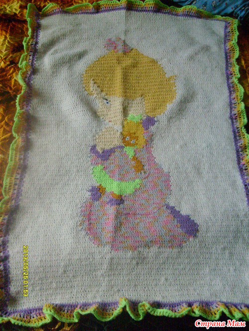 Еще один мой супер-долговяз. Начала еще прошлым летом, потом забросила... А тут подружка наконец-то после 7-и лет неудачных попыток забеременела. 17 мая родилась чудная девочка. Малышка с мамой уже дома, и мой пледик готов, жду возможности передать.