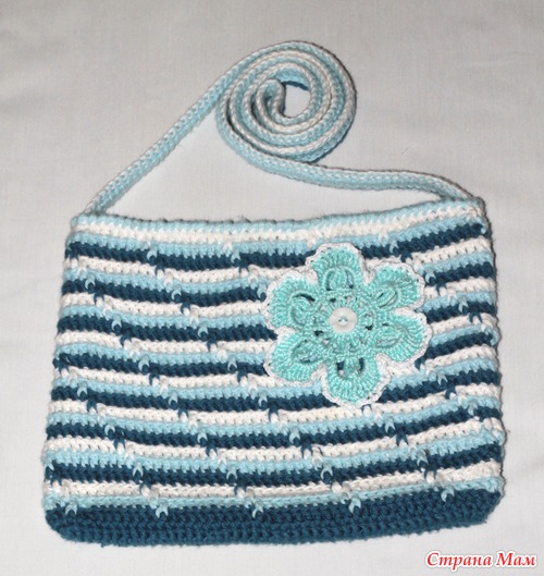 В результате за два коротких момента на отдых перед сном я связала вот такую сумочку для моей старшей доченьки.