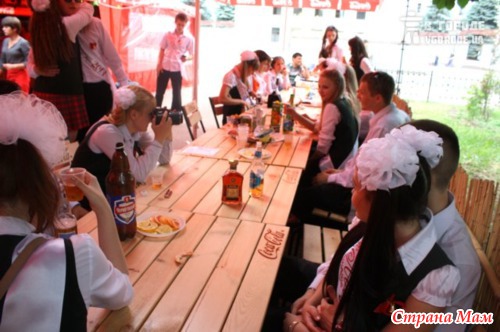 Идем вчера с дочкой в музыкалку на занятия, город наполнен радостными песнями выпускников. Вот и тут стоит веселая компашка, радостно щебечут! А нет, не щебечут, матерятся во всю глотку. Нарядные мальчики и девочки в школьной форме образца СССР, в беленьких гольфиках с бантиками на голове и... ВНИМАНИЕ: с сигаретой в зубах и бутылкой водки! Тут же на лавочке стоят стаканчики пластиковые, закуски ноль, одни сигареты. Вот она, взрослая жизнь, мы идем к тебе навстречу! Правда, во второй половине дня многие уже идти не могли, тупо валялись на траве в лучшем случае. И главное, что все взрослые идут мимо, оглядываясь на них с осуждением, некоторые с сочуствием. Правда, таких страшно и словом задеть в такой день, съедят и не подавятся. У них же праздник!!!