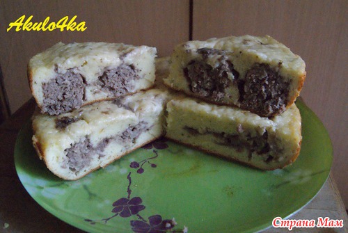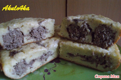 Мультиварку смазать сливочным маслом, влить тесто, достать мясные шарики из морозилки и "утопить" в тесте, сверху посыпать сыром. Выпекать на режиме "выпечка" минут 50. Готовность проверяем деревянной палочкой