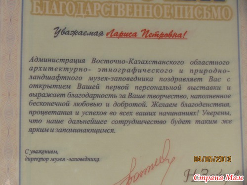 Для меня конечно персональная выставка -это что-то невообразимое -до сих пор не верю, что это произошло со мной)))) На открытии выставки я почувствовала себя Золушкой, которая много и тяжело работала и вдруг появляется Фея, взмах палочкой и я оказываюсь на балу, где мой труд оценен и все вдруг смотрят на меня совсем другими глазами.