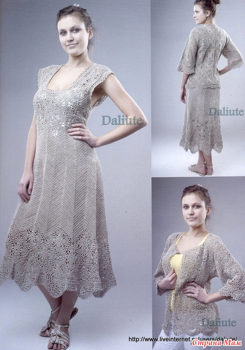 Тэги: вязание крючком, костюм, платье, платье крючком, жакет, из мотивов, для девушек и дам, для полных, для немодельных дам