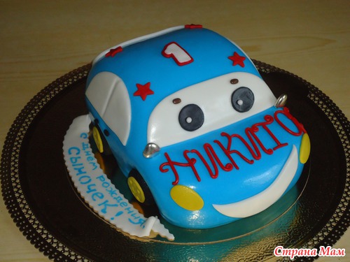 Машинка на 1 годик. Ванильный бисквит. Пломбирный крем с абрикосами. Полуганаш. Вес 2,2кг