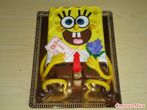 Губка Боб. Шифоновый бисквит. Пломбирный крем с вишней. Полуганаш. Вес 3,5 кг