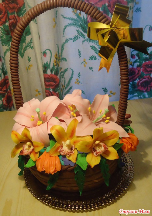 Корзина с цветами для учителя на последний звонок. Шифон. Маскарпоне со сгущенкой. Вес 2,7 кг