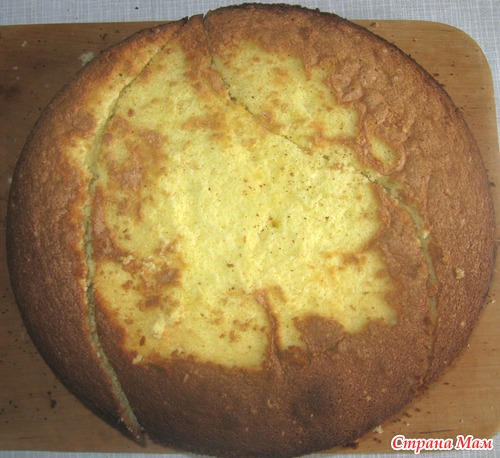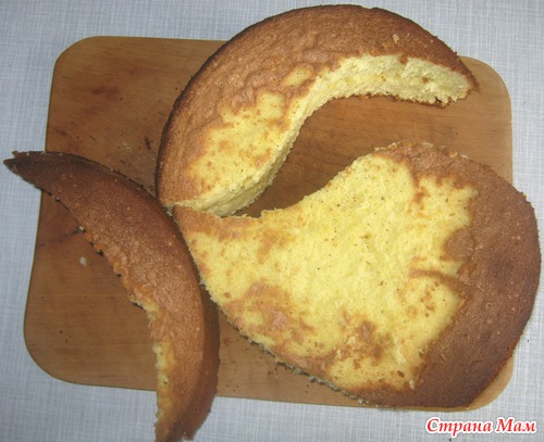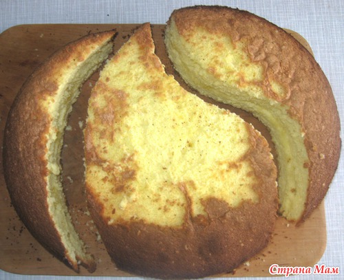 Так как своим девчонкам я обежала торт, то вечером пятницы в темпе вальса я начала перепекать корж (уже без выпендревания, по старой технологии). Не буду себя хвалить, но на второй попытке меня ждал успех. Бисквит получился и воздушным, и пышным, и высоким. Не бисквит, а сказка!