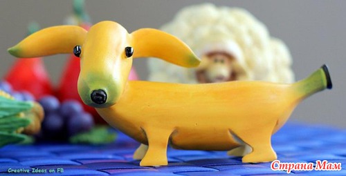 На днях нашла очередное очень интересненькое фото. Даже присмотрела, как его можно попробовать сделать. Возможно даже сегодня попробую сотворить. Особенно этот пост заинтересует мам очень маленьких сладкоежек, потому что речь идет о банане, вырезаном в виде собачки-таксы. Думаю, что повторить это будет, может, и трудновато, но при большом желаниии возможно. А на что только мамы не готовы для своих любимых ребятенок? Ну, вот как это выглядит в интернете :
