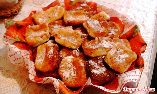 смешиваем творог с сахаром и яйцом, добавляем сметану и соду, соль и муку, замешиваем тесто, раскатываем тонкие колбаски и нарезаем батончики. Жарим в растительном масле. Готовые батончики обсыпаем пудрой. Готово! Вкусно. Главное, детям нравится))))