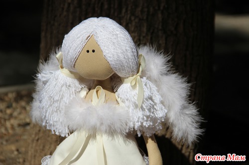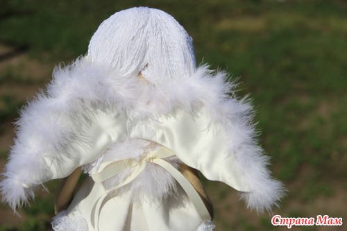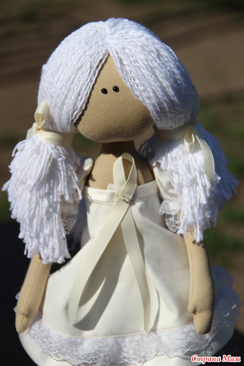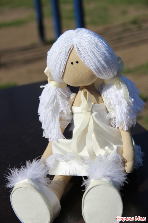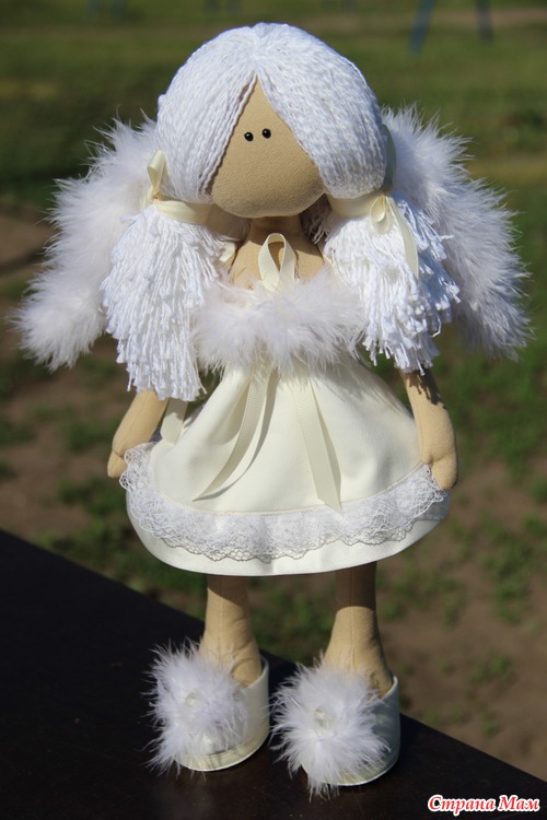 Платье, крылья и туфельки из хлопкового атласа, кружево, репсовая лента, тело из хлопка,