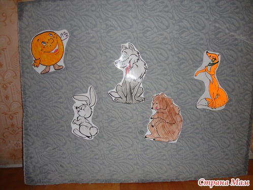 Сказки (у нас их чуть больше 10) распечатала и раскрасила, заламинировала скотчем, сзади приклеила наждачную бумагу. И вуа-ля готово.