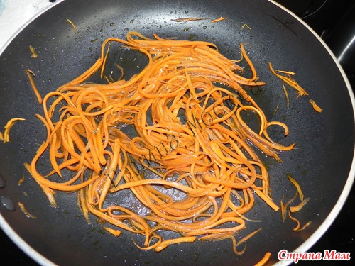 Морковку немного припустила для мягкости на сковородке с минимальным колличеством масла, но с добавлением бальзамического уксуса. Немного подсолила.