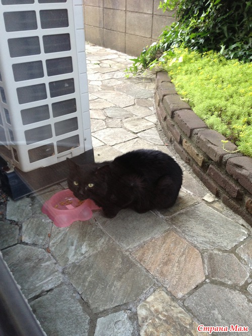 . Полечить его или взять к себе я не могу, так что буду подкармливать, пока ходит к нам.Какой у меня замечательный муж. До нашей Ми он к кошкам вообще был равнодушен, а сейчас если видит, что Черныш пришел, то сам ему дает покушать