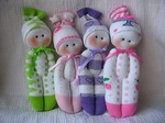 Пришиваем голову к тельцу куклы, из верхней части носка делаем шапочку. Рисуем щечки. Наша куколка готова.
