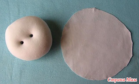 Вырезаем из ткани круг, обшиваем его края швом "вперед иголкой", набиваем ватой или синтепоном, затягиваем нитку. Пришиваем глаза.
