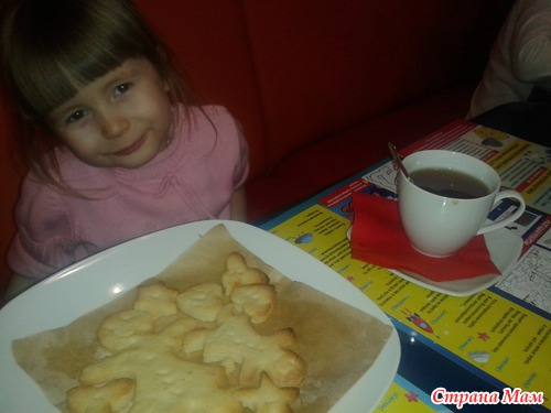 Вкусного, кстати. Дите было довольно донельзя и периодически с гордостью повторяло: "Мамочка, видишь, какая у тебя дочка - помощница? Печенья тебе напекла!".