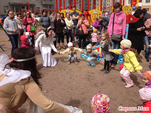 Муж рассказывал, что они в этот раз просто с Ксюхой гуляли во дворе, как вдруг набежали всякие активные девушки, расставили колонки и устроили экшн. Народ у нас халяву любит, поэтому быстренько организовался аншлаг.