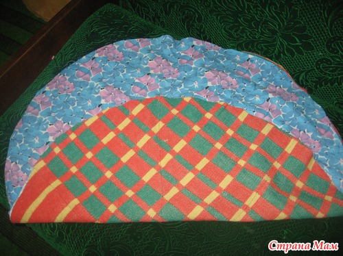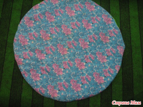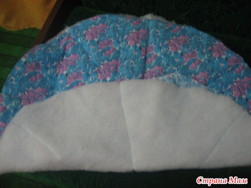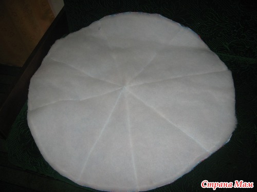 Затем круг из синтепона и второго круга главного материала так же сложила и простегала