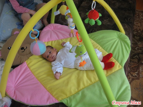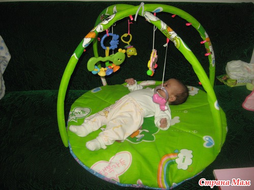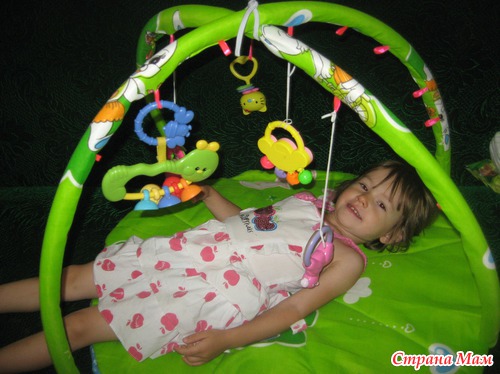 Доброе время суток! Коогда моей Николь исполнился примерно годик, я встретила в нете коврик с погремушками, шить было уже поздно, но я была в таком от него восторге, что идею запомнила решив обязательно сшить такой же для кого-нибудь из своих родных, кто родит. Но кто же мог подумать, что не пройдет и пару лет, как я вновь буду ждать малышку, мы конечно купили такой коврик, фото ниже покажу, но идея сшить самой меня не покидала, во время беременности я сшила сам коврик, а вот дуги дошила буквально на днях. Шила сразу 2 коврика, для своей доченьки и для сына подруги. Им то я быстро сшила и подарила, даже не успев сфоткать, а свой сегодня впервые закрепила.