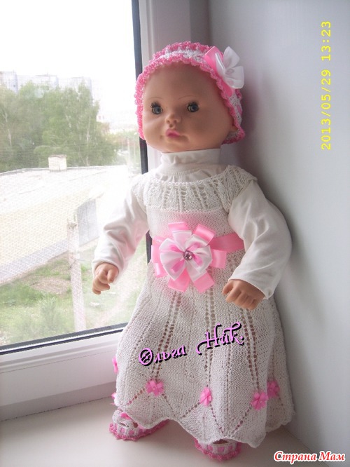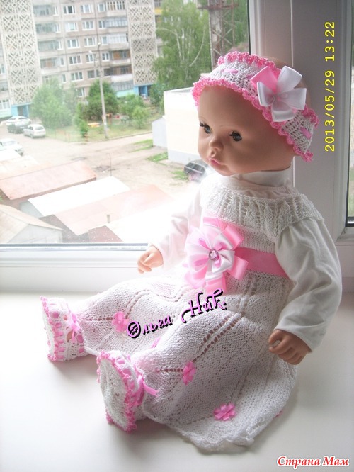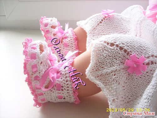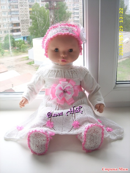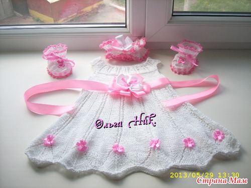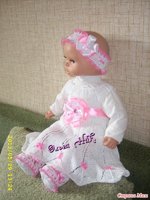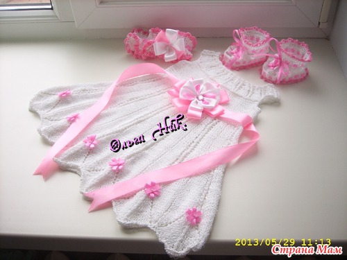 Связала крестильный комплект - "Дарья" В комплект входит: платье, повязка на голову и пинетки - сандалики, все это великолепие для новорожденной девочки - Дашеньки