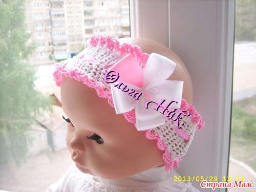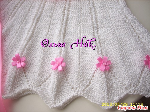 . Вязала из ниток "Ромашка", спицы № 2 и крючок №2. Ушло неполных 2 мотка белой пряжи и совсем чуть чуть розовой.Получилось нежно, красиво, очень свеженько.