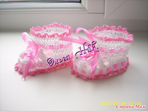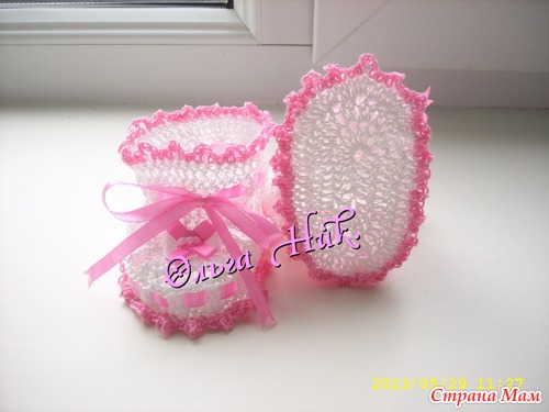 . Вязала из ниток "Ромашка", спицы № 2 и крючок №2. Ушло неполных 2 мотка белой пряжи и совсем чуть чуть розовой.