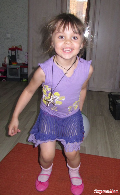 Идею взяла здесь у наших девочек, большое спасибо!!! Вязала из хлопка Денди фирмы камтекс, 50гр - 330м. расход фиолетовой почти 100гр, сиреневой 50гр. Названию помогли появится "Маленькие пони".