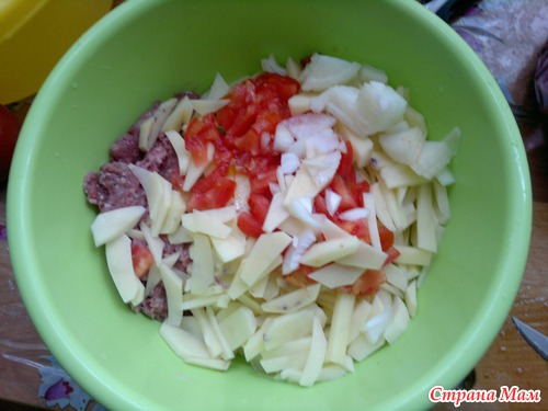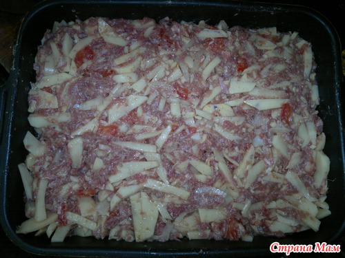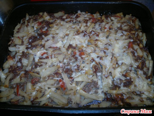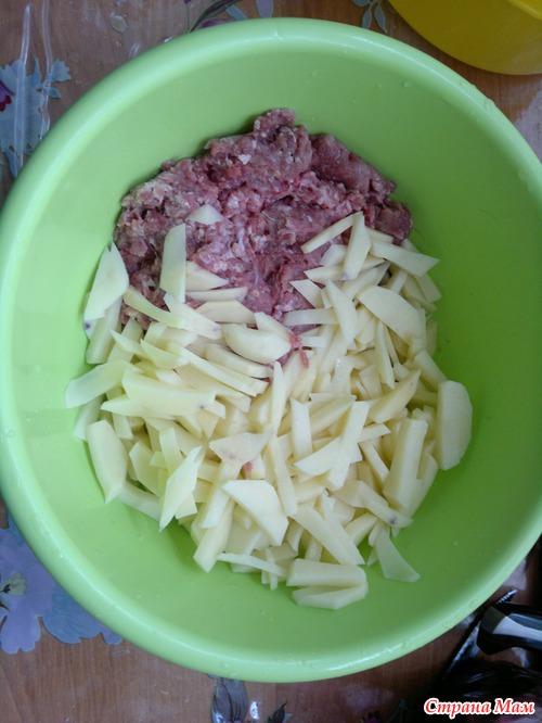 Картошку нашинковать средней соломкой и добавить любой фарш