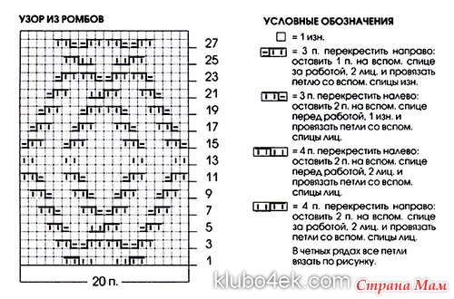 Узор из ромбов (ширина 20 п.): вязать по схеме.