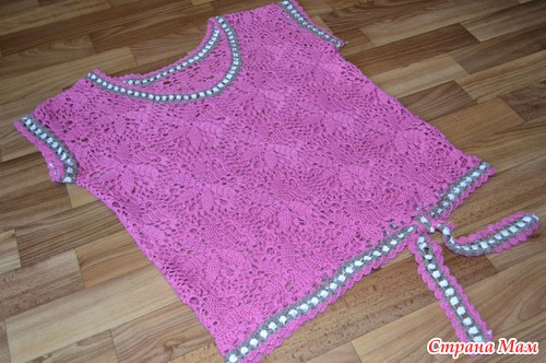 Скажите, пожалуиста, что вы вязали между мотивами, маленькие цветочки или просто сетку?Я первыи раз вяжу тунику из мотивов и не знаю что лучше вязать между мотивами