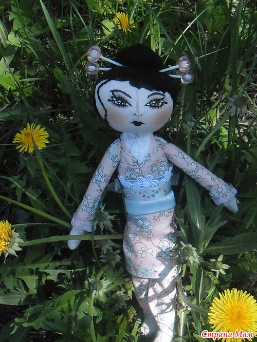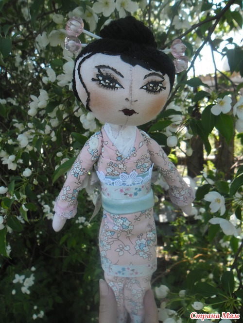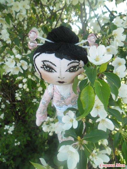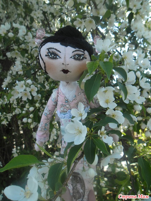 , что означает "девушка с красивыми глазами" родилась прекрасным весенним днём. Это первая моя тыквоголовая куколка. Получилась загадочной и своенравной, но, наверное, так и положено восточным девушкам))
