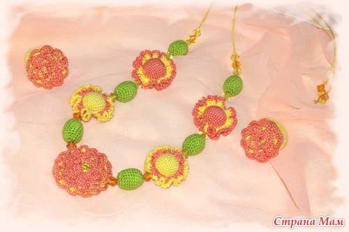 Комплект состоит из бус, длину которых можно регулировать, двух резиночек для волос и колечка. Но, к сожалению, его сделала уже после фотосессии((( Буду ждать фото с отдыха - мама обещала их сделать и даже разрешила показать всему миру! Так что теперь мой черёд сгорать от нетерпения)))