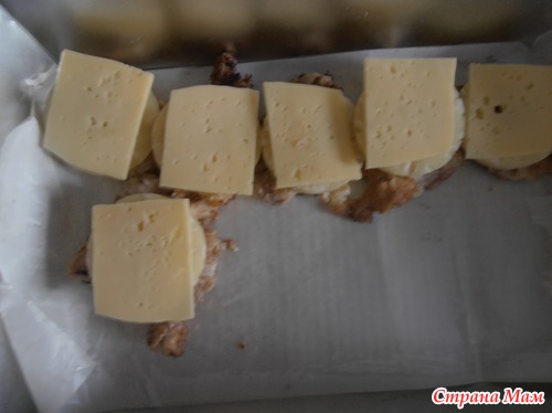 Противень застелить бумагой для выпечки, или смазываем растительным маслом, выкладываем мяско на эту противень.