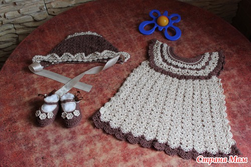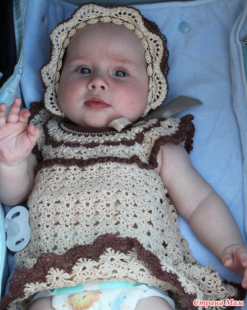 Как видно, шапочка, кокетка и пинетки ещё украшены бусинками, ну, чтобы быть совсем как принцесса.