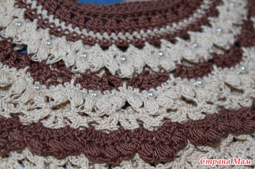 Я тоже вязала сарафанчик в этих тонах, вот что получилось https://www.stranamam.ru/post/2690629/ . Но идея с бусинками отличная, получилось очень нарядно
