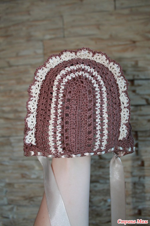 Шапочку тоже вязала "из головы". Основа похожа на следующую схему, а узор для бочков взяла от платья. обвязку рюш придумывала по ходу