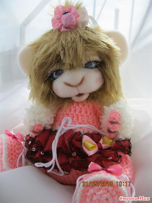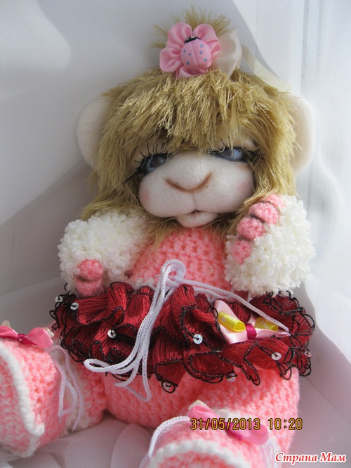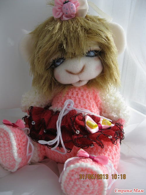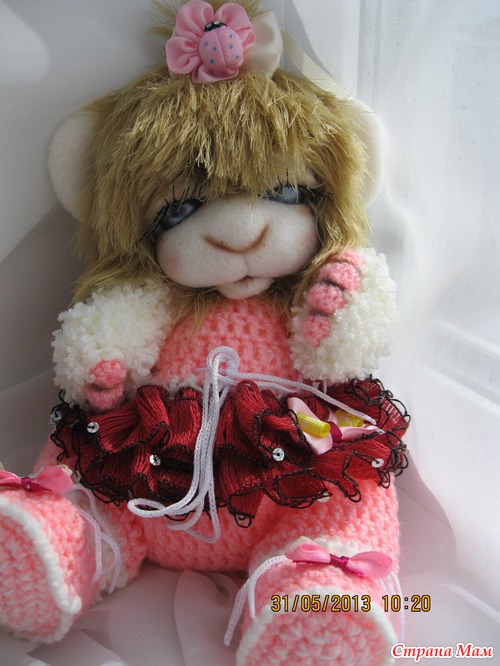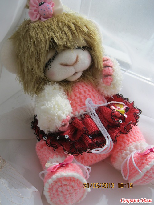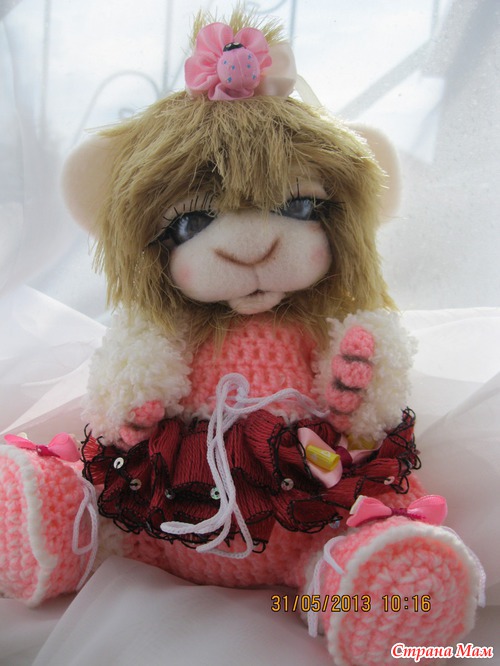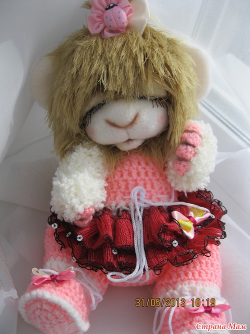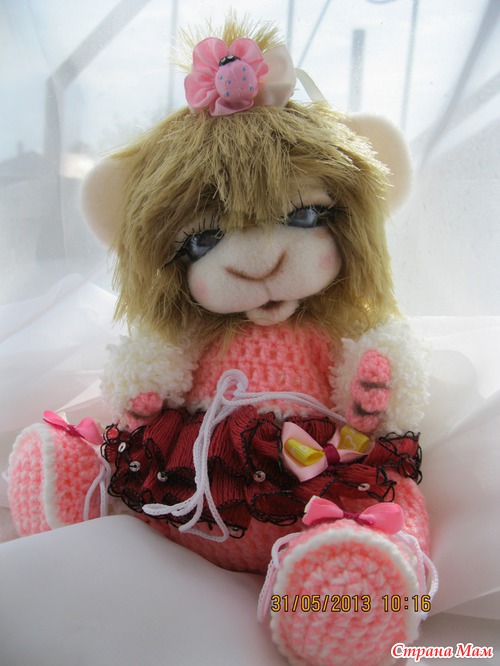 Малюнечка маленькая девочка. Ростик 24 см. Связана из детской и фактурной пряжи. Мордочка сухое валяние. Головка поворачивается и наклоняется. Глазки открываются и закрываются. Ротик открывается и закрывается. Одежда комбинизончик и пинеточки снимаются. Малышка очень любит поспать и поиграть. Ищет мамочку..