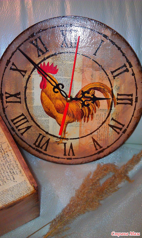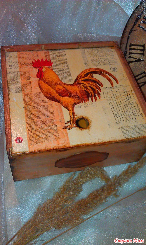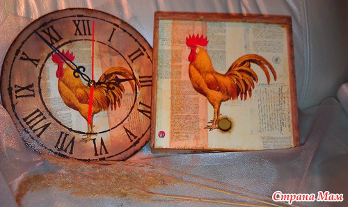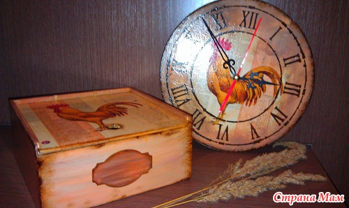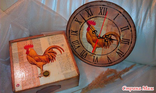 Заготовки пошкурила, нанесла шпаклевку на короб для чайных пакетиков, загрунтовала, приклеила салфетку, фон нарисовала, на часы трафарет нанесла, края попачка битумным лаком. Все покрыла лаком... а внутри короба заморила крепким чаем.. Петушки ждут новых хозяев... Читать полностью