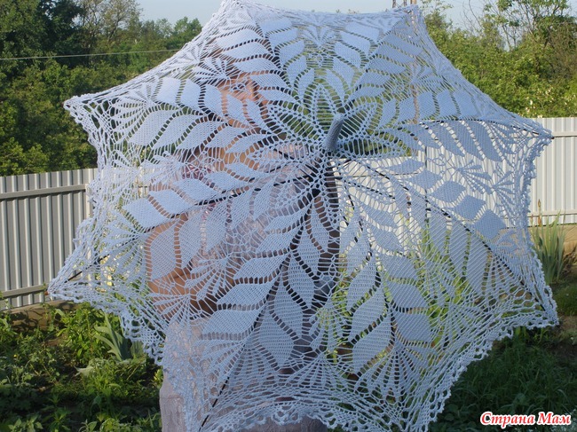 Диаметр 100см, крючок 1.5 пряжа Макси расход-примерно 250 грамм с учетом ниток на обвязывание ручки и наконечника.