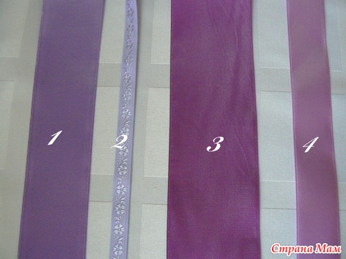 Предыстория... Была у меня лента 38мм как на фото под №1. Тут нарисовался заказ к свадьбе. Заказала я в той же самой группе, где и заказывала уже имеющуюся ленту, ещё ленты под таким же номером, но другой ширины. А сама, пока шла моя посылочка, прикупила в магазине итальянскую тесьму как под №2 на фото (и ещё кремовую такую... она такая суперская... ммм одни плюсы, только дорогущая - это минус). Ну вот приходят мои ленты. Я в шоке...