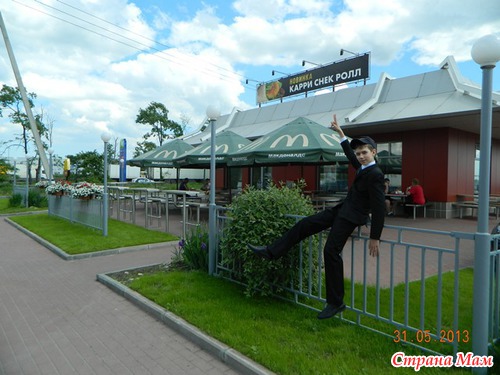 Вот и прошли мы половину маршрута. Устал мой спутник, ведь сегодня его день и мы собирались отпраздновать окончание школы в Макдоналдсе