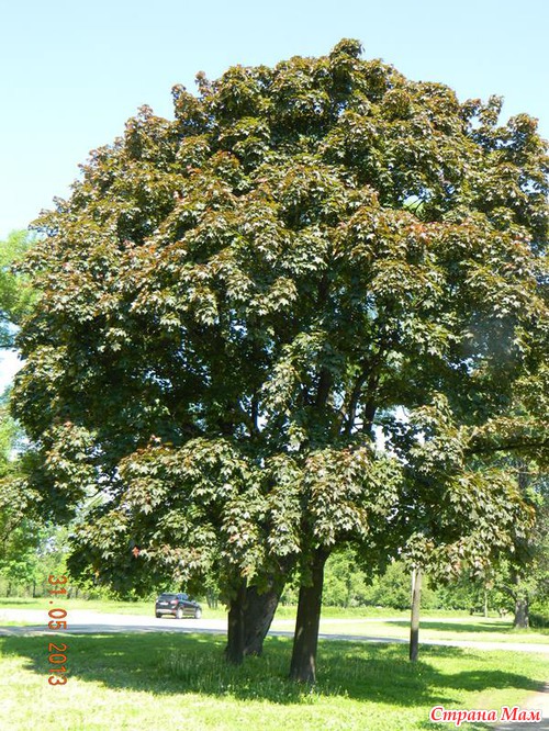 Вот из-за каштана его тоже видно, но лучше всего смотреть на них осенью. Листва бордовая, удивительных оттенков.