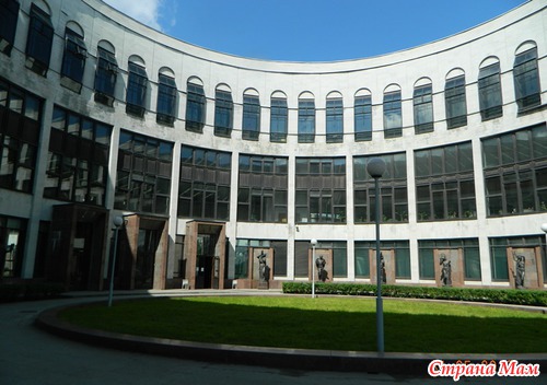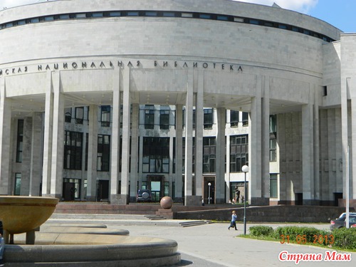 А сл. внушительное здание - это здание Российской национальной (бывшей Публичной) библиотеки. В нём разместились студенческие залы. Вход в здание украшен скульптурами «Правосудие», «Религия», «Театр», «Архитектура», «Механика», «Медицина», «Воздухоплавание», «Виноделие», «Философия», «Музыка», выполненными скульпторами Б. А. Свининым и А. Мурзиным (учеником Свинина). Построен комплекс в 1998г.