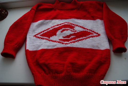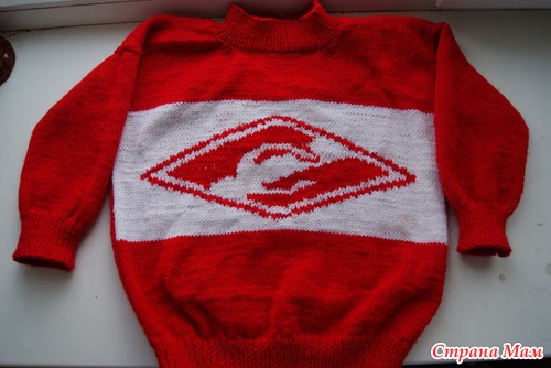 Связался свитер для сына, по заказу нашего папы. Свитер вязать не очень хотелось, но заказчик оказался важной персоной для меня, поэтому отказать нельзя было. Пряжа Нако Беби, 50 гр. белой пряжи и 250 гр красной.