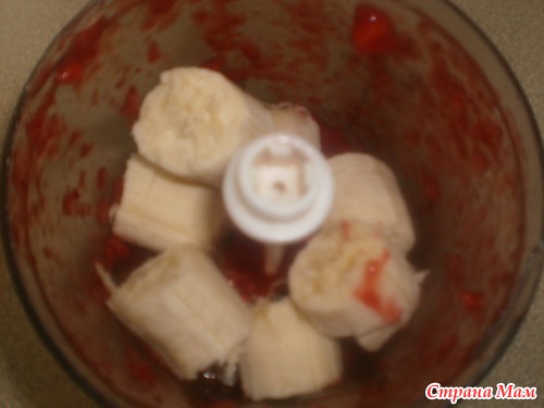 и один банан режим кусочками. Остальные ягоды и банан перемешиваем в блендере.