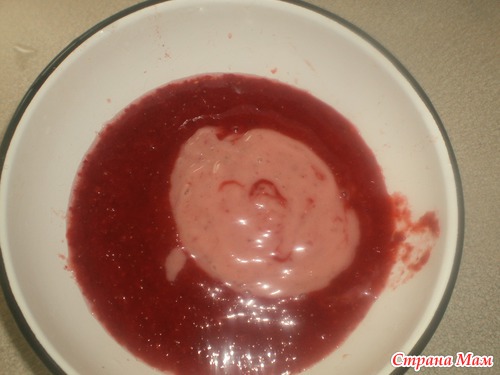 Добавляем желатин. Я добавляла 25 гр. (пачку). У меня получилось ягодное суфле, можно больше ложить желатина, чтоб было желе. Мне нравиться в виде суфле, оно так нежнее. Кладем в холодильник и смотрим когда оно начнет густеть.