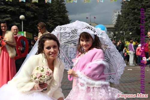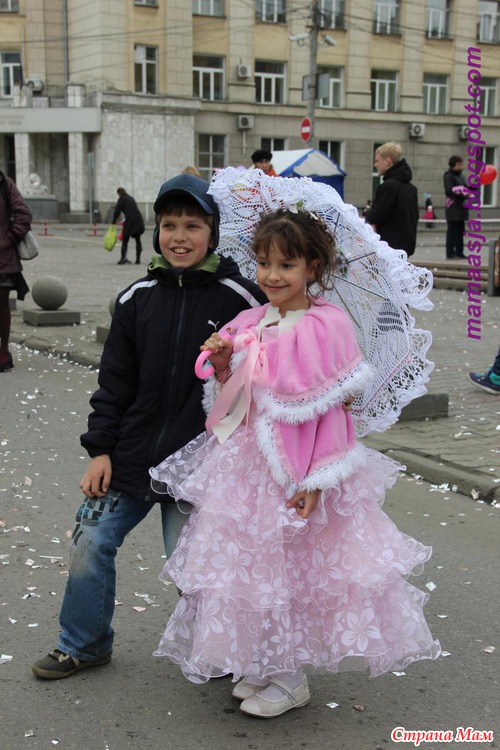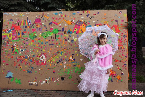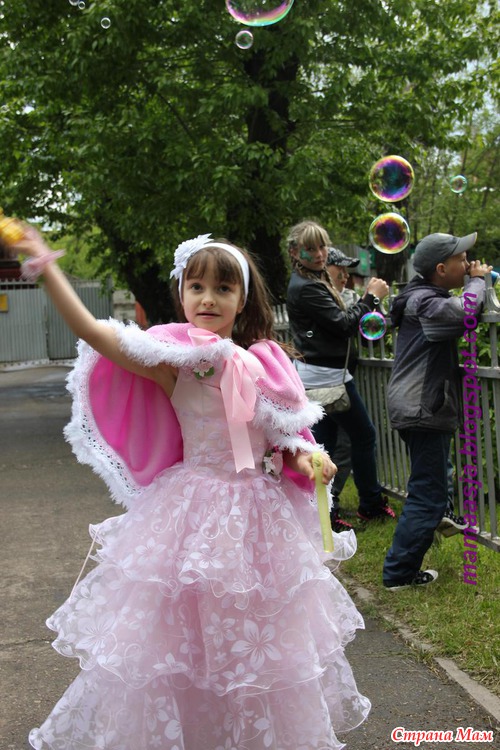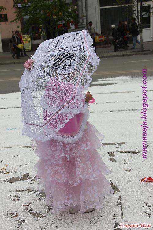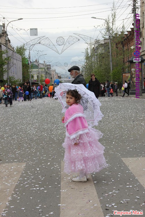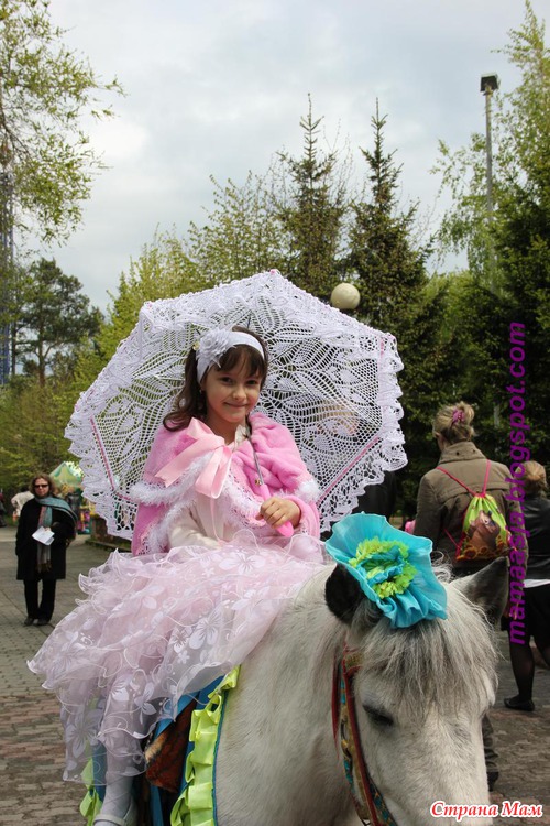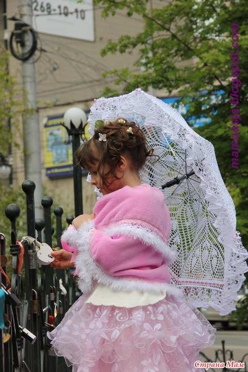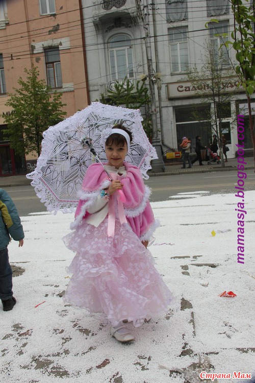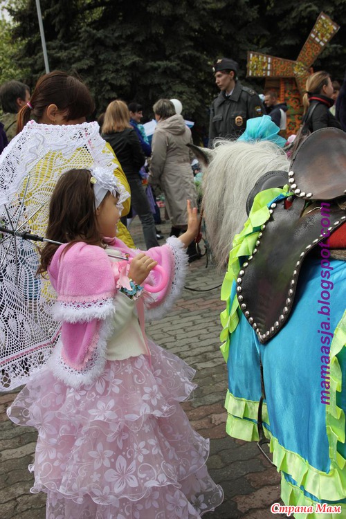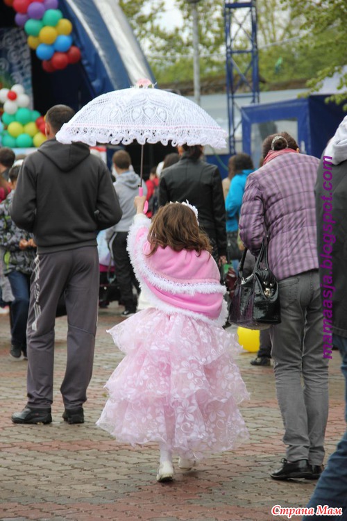Представляете пасмурный и холодный день, вроде и праздник и первый день лета, а мысли у людей невеселые... идут хмурные, думают "Лето-то будет?", а тут такая розовая принцеска навстречу с летними аксессуарами... Люди реально начинали улыбаться и вслед мы слышали: "Ах, какая принцесска"... раз двести примерно слышали... И Вы конечно понимаете, что при этом чувствует сама принцесска, а какое настроение у ее мамы!!! Поэтому, девы, у кого в городе нет лета, заряжайтесь позитивом