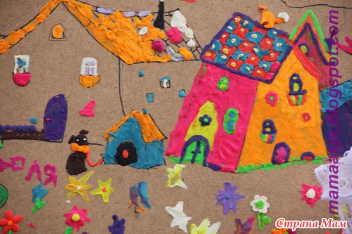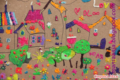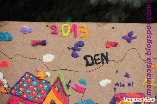 Папа нас уже ждал на выходе, а тут мы увидели пластилиновый город... ну как пройти мимо: