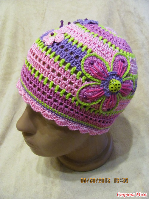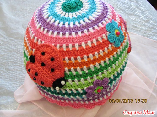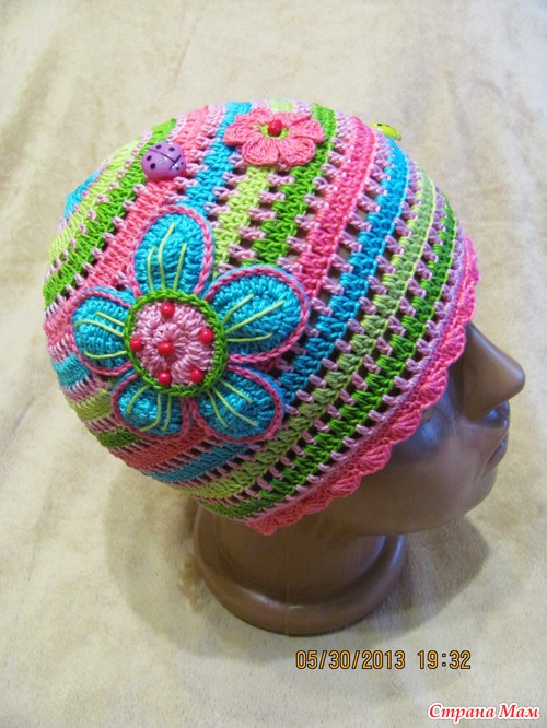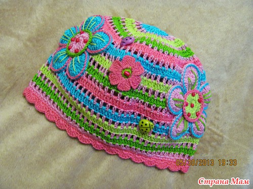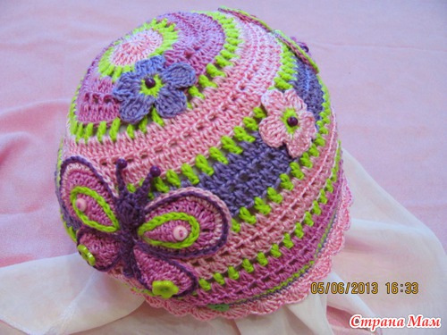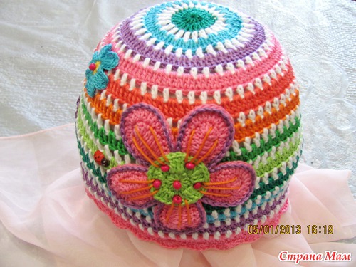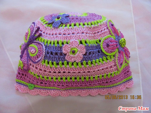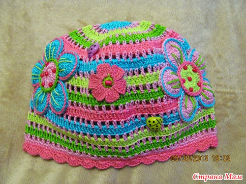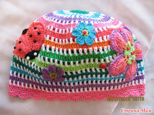 За основу шапки брала всем известную схему, а аппликации вязала сама без схем